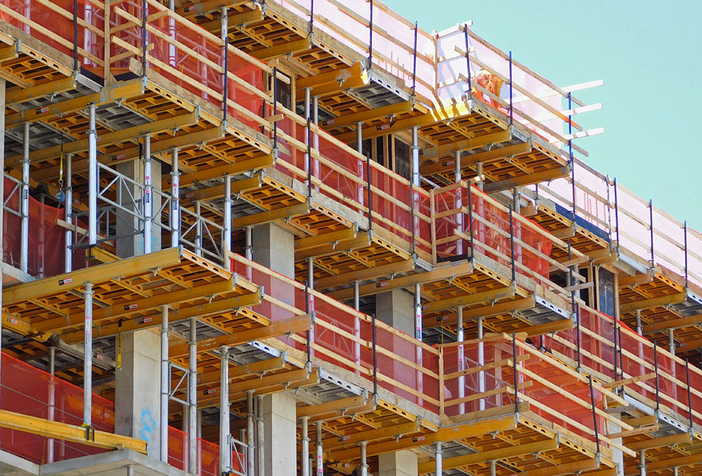 Panels make up the biggest part of the form face. With the basic grid 2.32 m x 1.5 m, a prop rate of 0.29 props/m2 can be achieved.