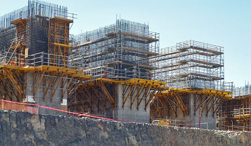- Formwork stripping distance: 80 cm with roll-back carriage, or 5 cm to 15 cm with tilt-back system